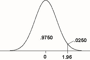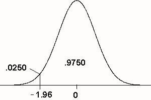 Examples: z.5000 = 0.00; z.9750 = +1.96; z.0250 = -1.96