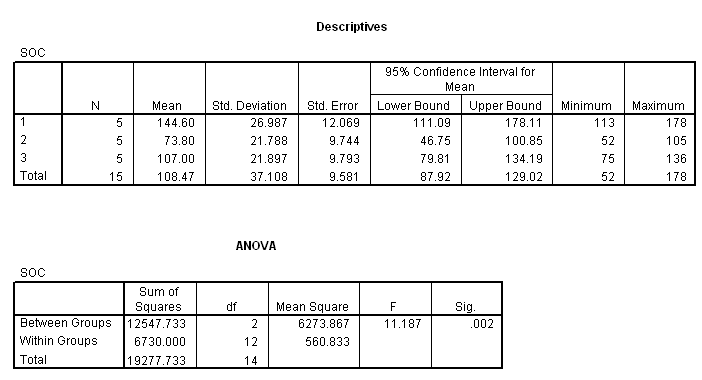 Report the F statistic and P-value used to test H0: �1 = �2 = �3. Fstat = 5.53 with 2 and 90 df; P = 0.005. Therefore, the difference among groups is significant.
