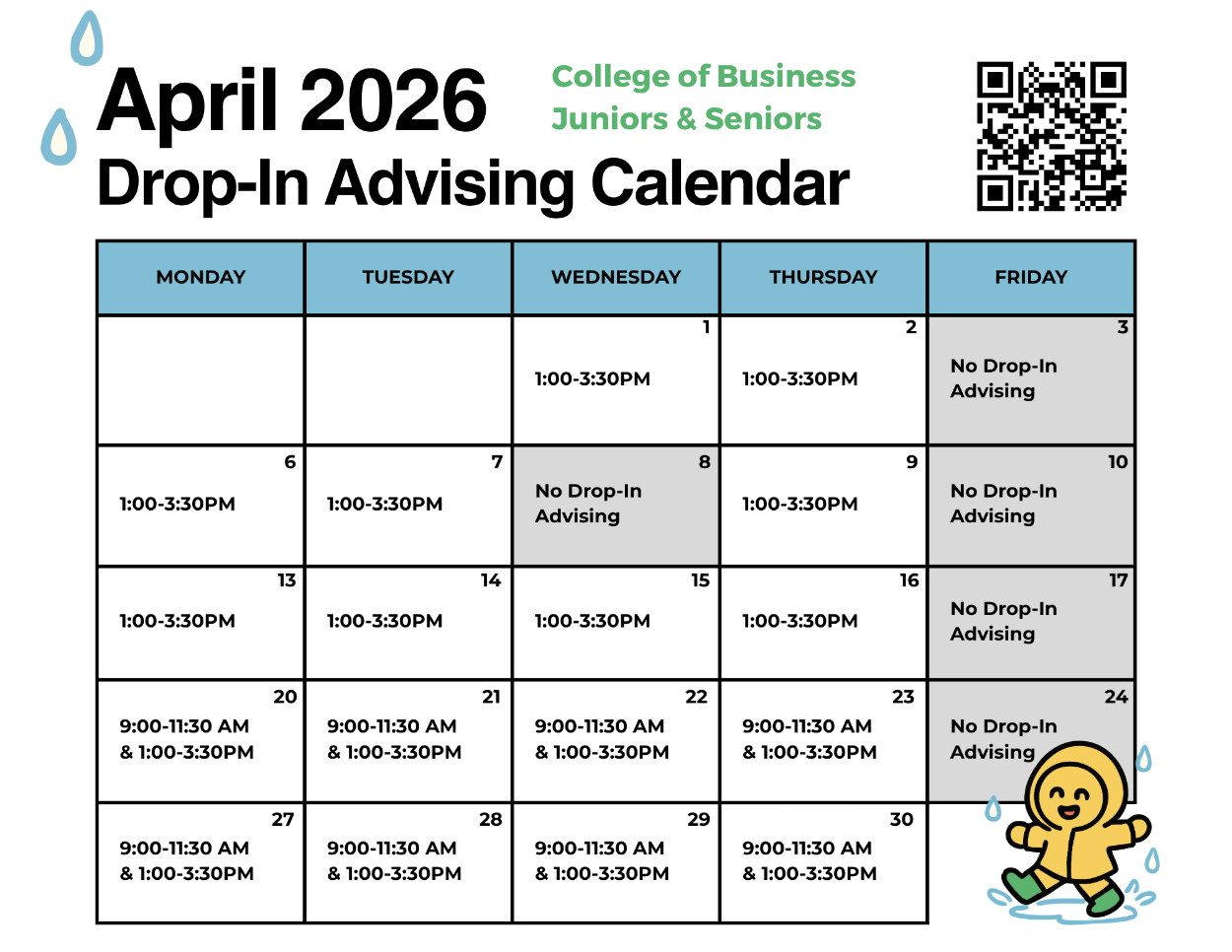 *Students interested in changing their major to Business or adding the Business minor must attend drop-in advising (Service #2).